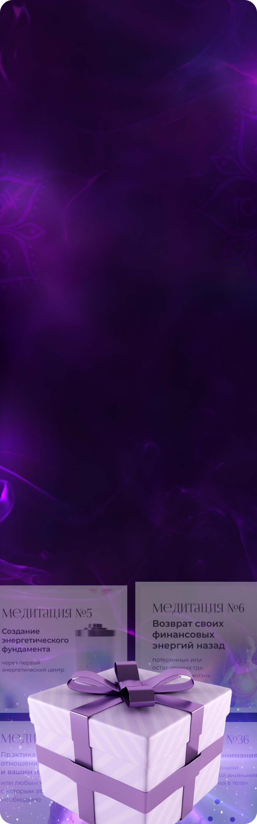Возможность получения поддержки лично от Сергея на протяжении 6 недель + 3-х месяцев участия в закрытом клубе медитаций